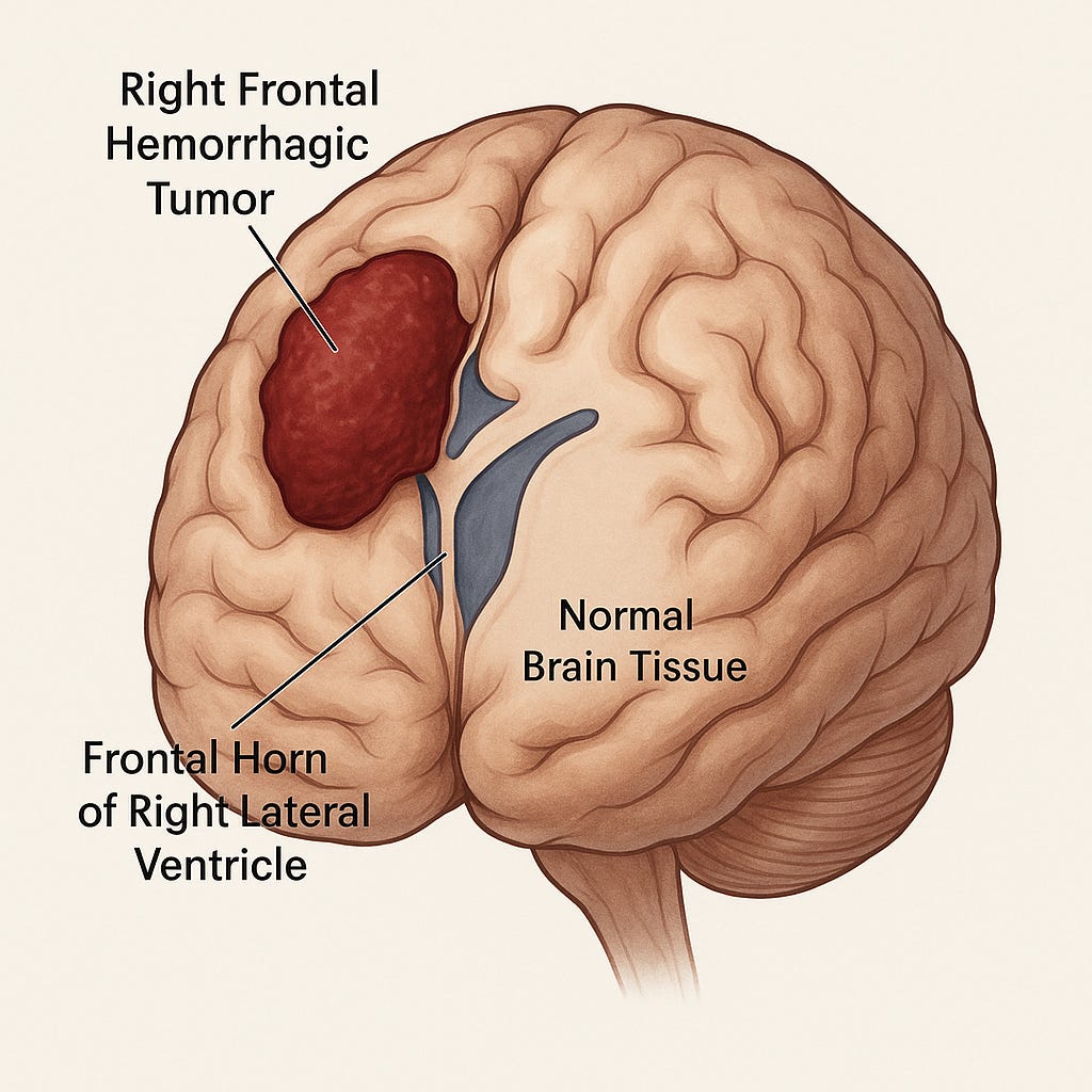 I made this visual to get an idea of what my bleeding tumor likely looked like right before surgery last October. Bodies are wild. Neurosurgeons are astonishing.